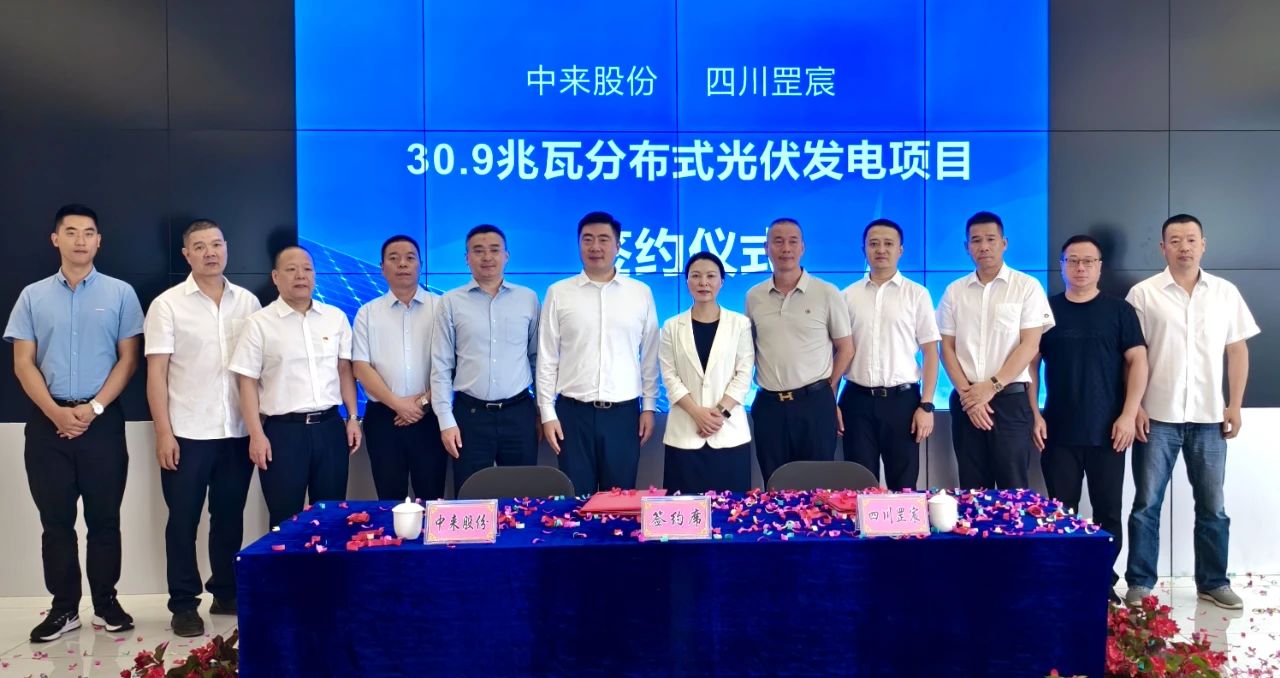 6月20日,中來新能源與四川罡宸不銹鋼有限責任公司(以下簡稱“四川罡宸”)簽訂30.9MW分布式光伏發(fā)電項目(以下簡稱“項目”),項目利用四川罡宸廠房屋面建設光伏發(fā)電系統(tǒng),采用中來N型單晶高效雙面透明背板組件,由浙能能服和中來新能源聯(lián)合投資并負責項目的設計、開發(fā)、建設、管理和運營等工作。樂山市沙灣區(qū)區(qū)長汪秀麗,樂山市沙灣區(qū)區(qū)經(jīng)開區(qū)書記劉學;四川罡宸董事、總經(jīng)理林學武,四川罡宸董事、黨委書記李桐光;中來股份副總裁、中來新能源總經(jīng)理王宏亮,中來新能源開發(fā)總經(jīng)理耿磊,中來民生中原大區(qū)總經(jīng)理王學鵬等出席簽約儀式。